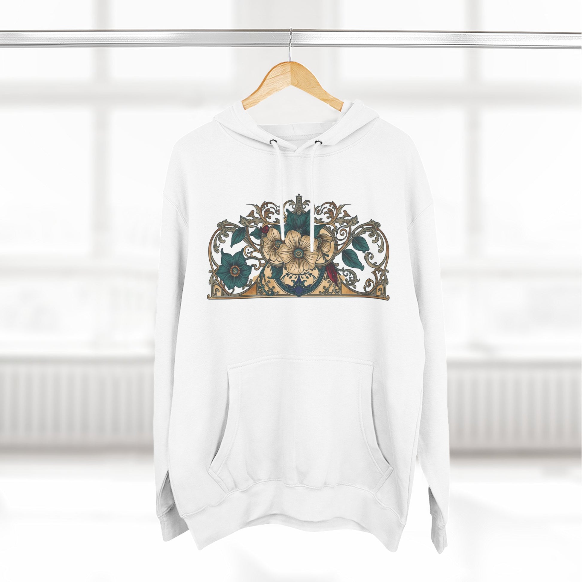 Floral Baroque Crest Hoodie | Vintage Ornate Flower Panel