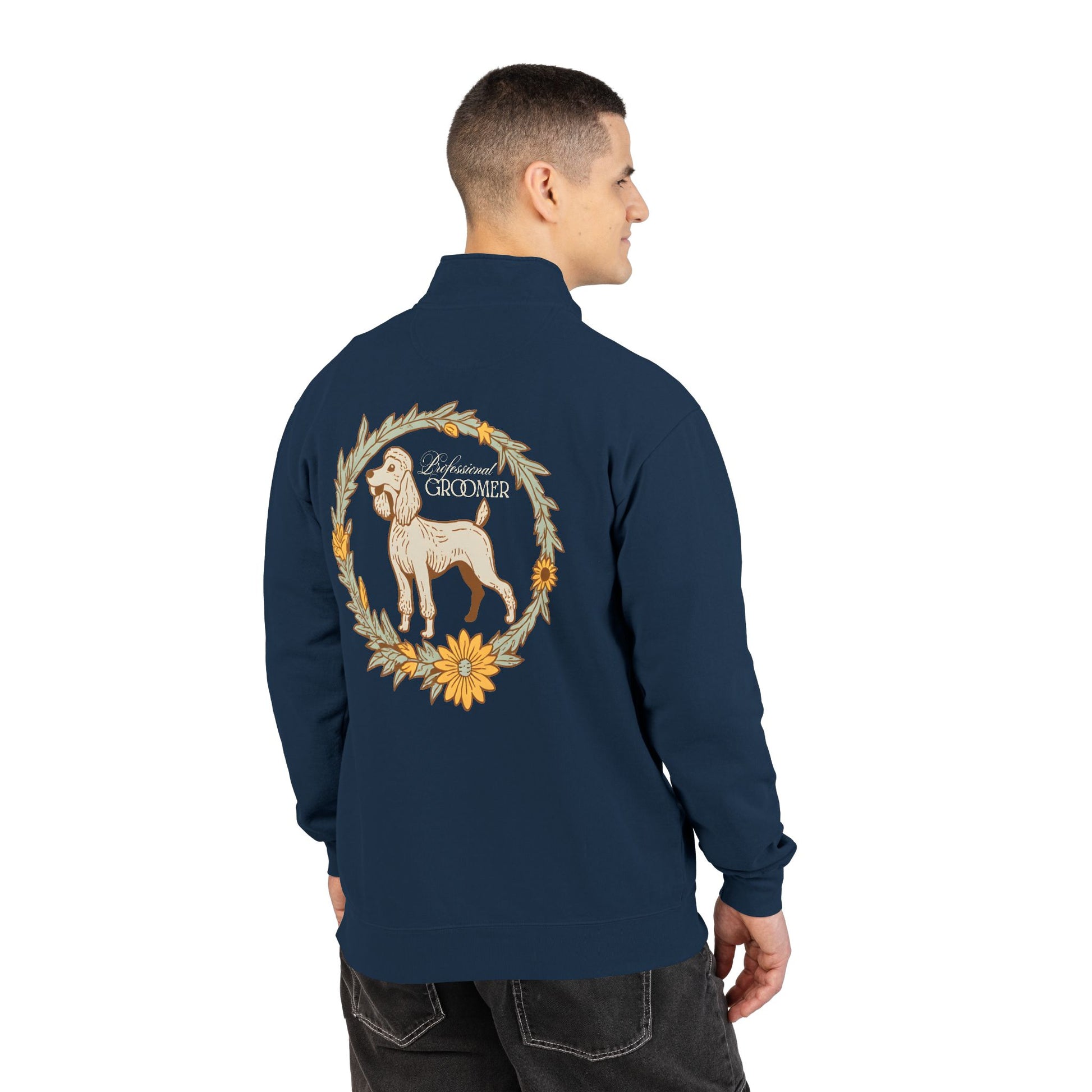 Groomer Dog Quarter-Zip Sweatshirt — Floral Veterinary Pet Grooming Pullover